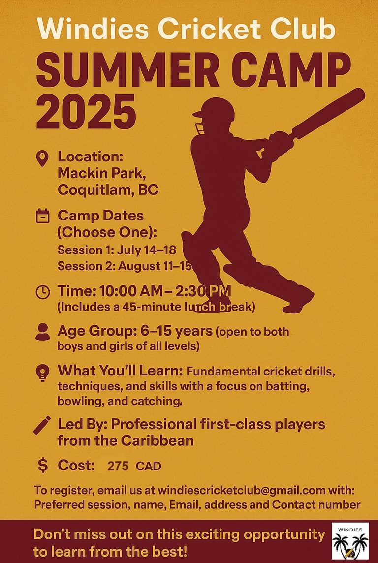 All our coaches are first-class players from the Caribbean, guided by the renowned "Nigel James" — a respected mentor and well-known figure in Vancouver’s cricketing community.